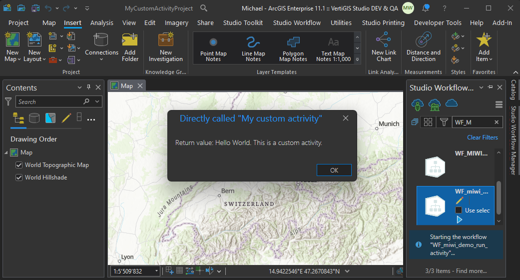 Workflows that run in your custom VertiGIS Studio Desktop application can now run this custom activity.